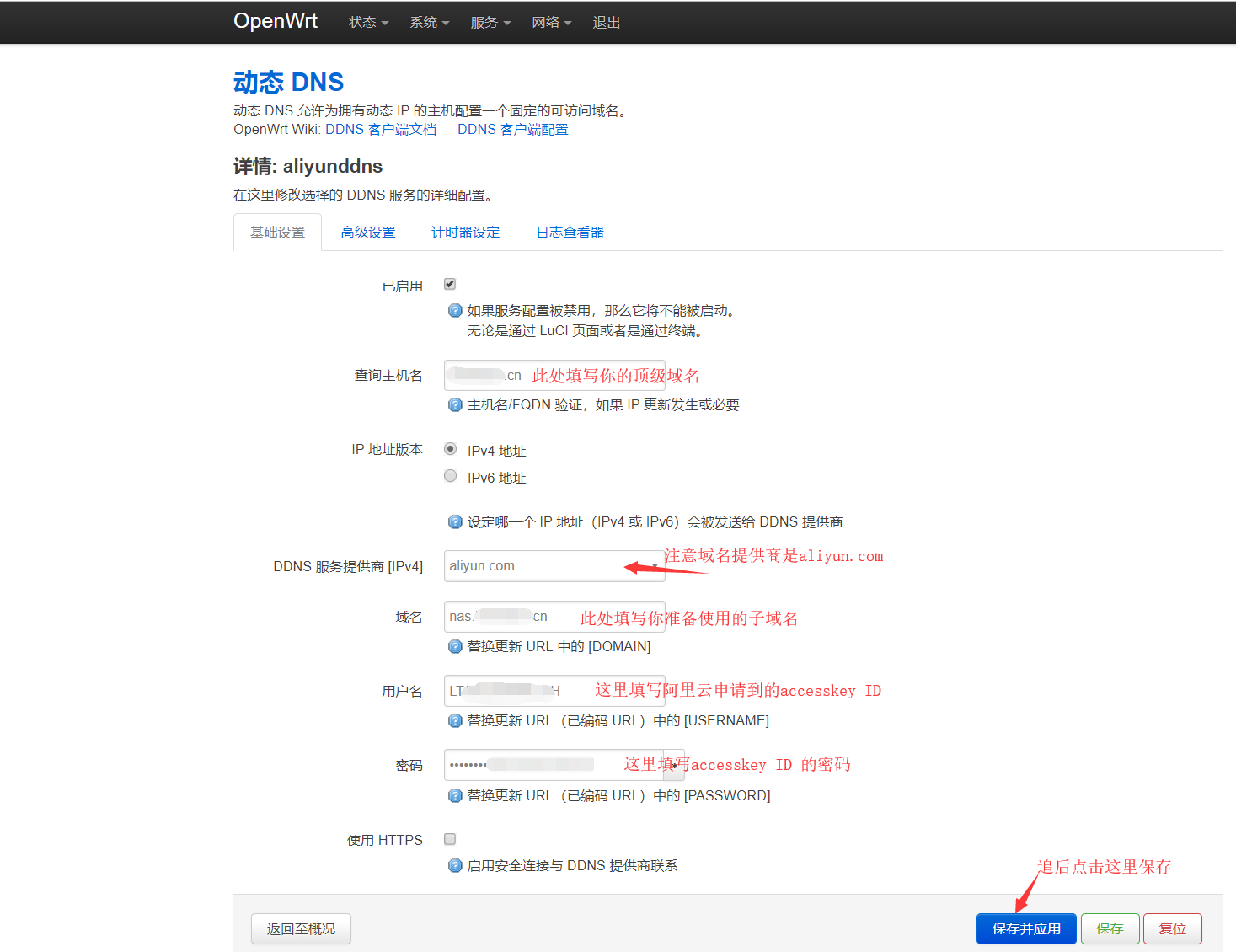 4.在openwrt中配置阿里云DDNS